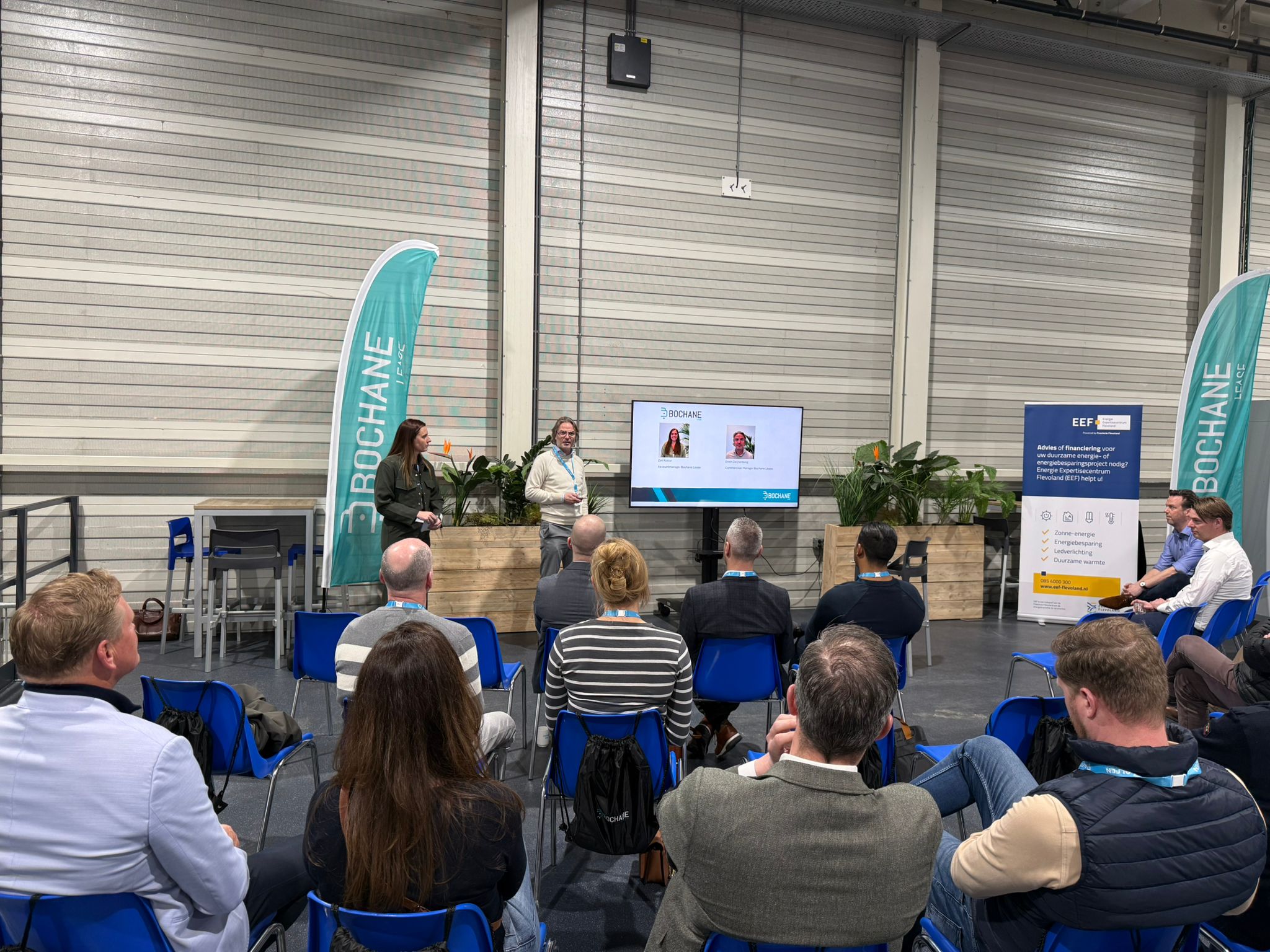Zoë Koster en Erwin Zwijnenberg van Bochane Lease adviseerden: ga tijdig in gesprek met je wagenparkbeheerder, dealer of accountmanager – óók over de afbouw van je huidige niet-elektrische wagenpark.